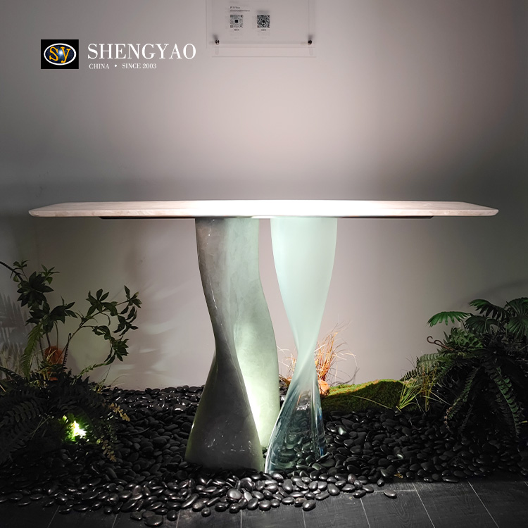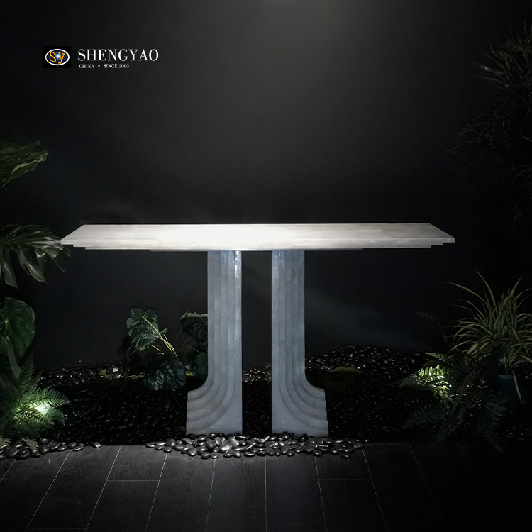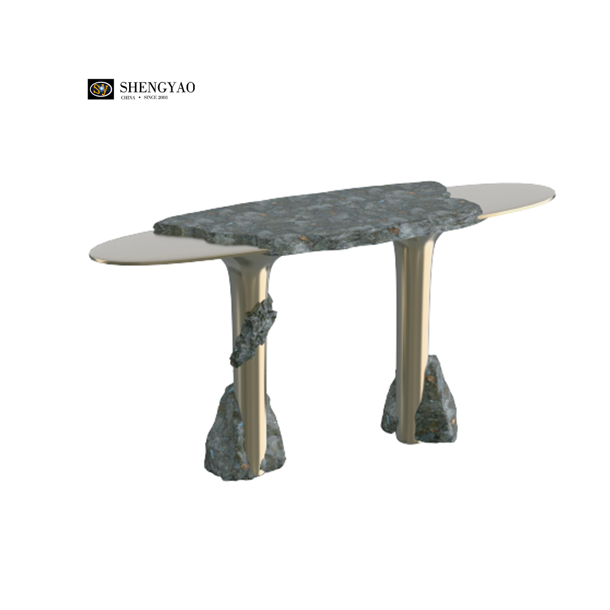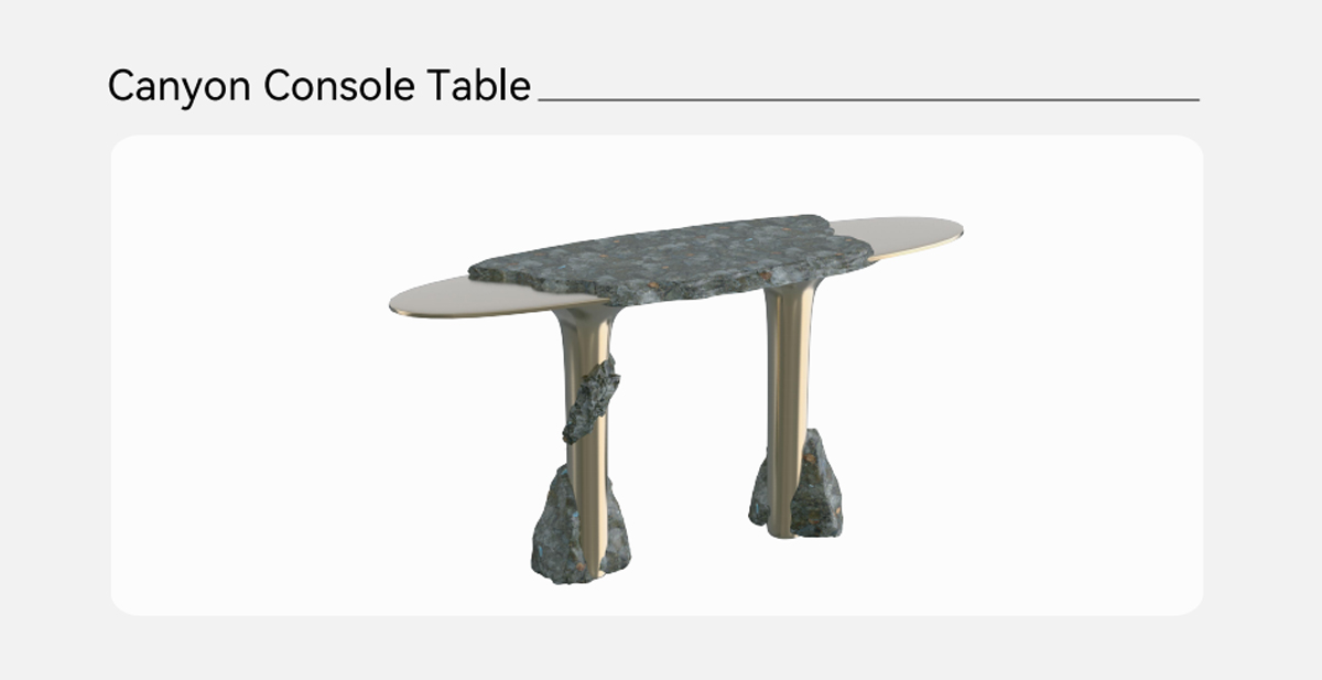 以峡谷侵蚀地貌为灵感,峡谷的曲折、层次和阴影变化为设计提供独特的视觉元素:外形模仿峡谷的轮廓,体现自然的厚重感,强调自然力量与和谐之美。 闪光石以其自然形成的晶莹剔透和闪耀的光泽著称,仿佛是大自然中的璀璨明珠。它不仅能反射光线,营造出迷人的光影效果,增强了整体的视觉层次感。