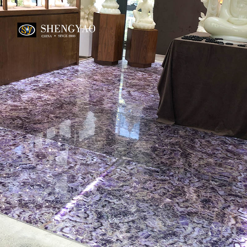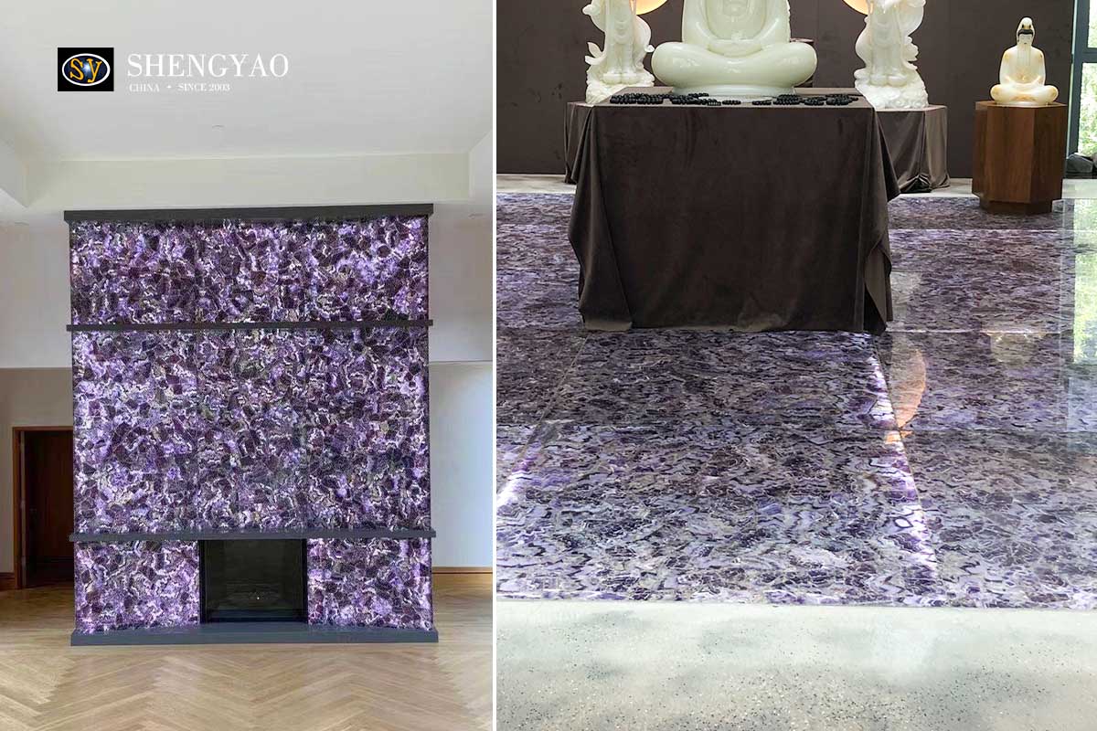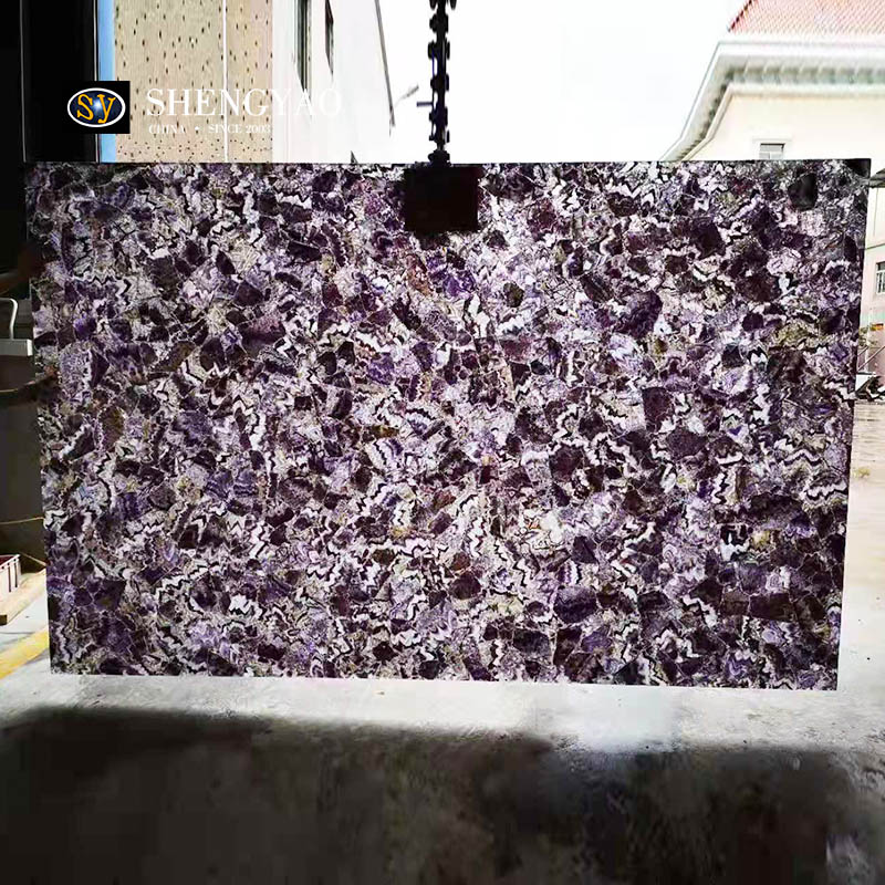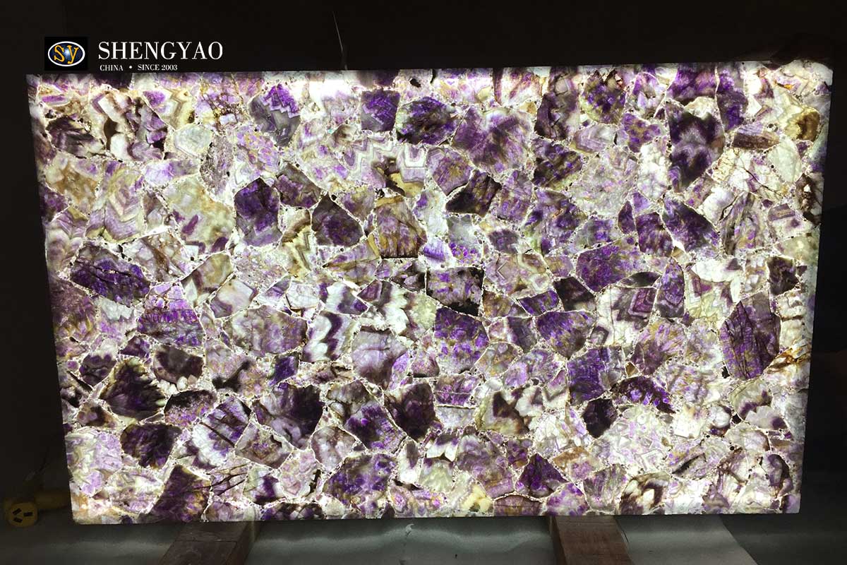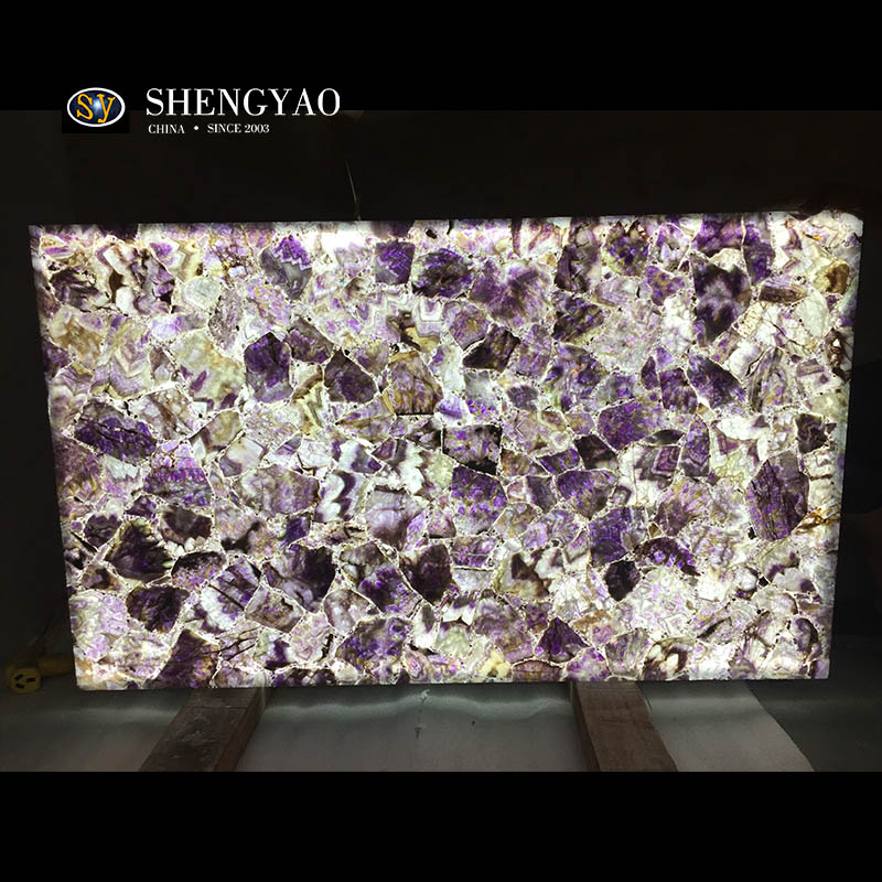 Piedra preciosa retroiluminada Losa de piedra amatista,Fabricante de losas de piedra semipreciosa