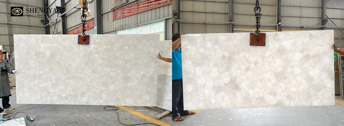 Translucent White Crystal Quartz Slab Are Used For Wall Furniture And Countertops