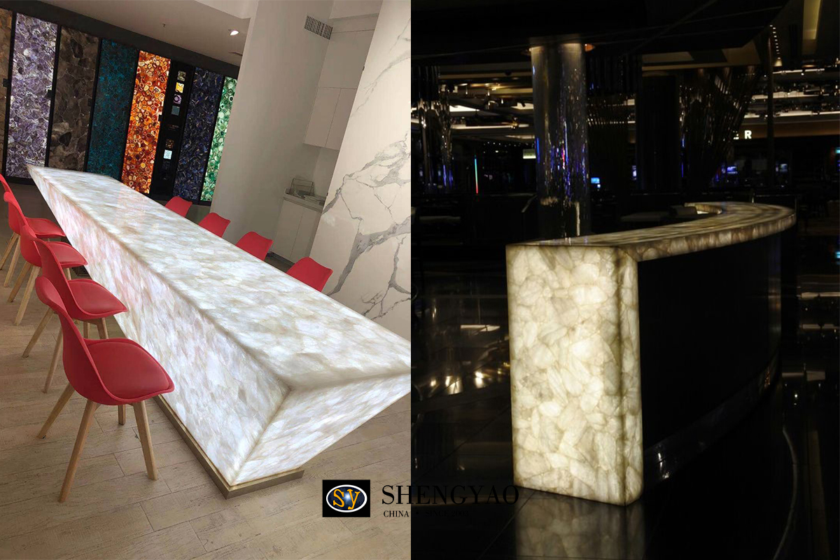 In short, white quartz/crystal slab play an important role in modern decorative design with their unique aesthetics and functional properties. Whether used for background walls, furniture or kitchen and bar counters, it can bring a unique visual experience and high-quality decorative effect to the space.