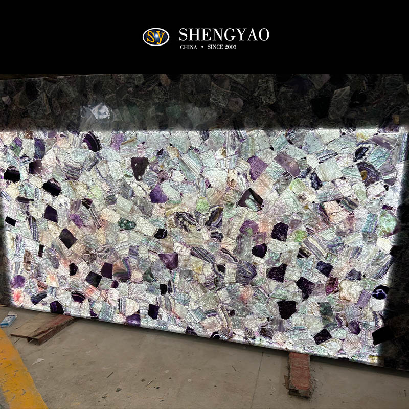 Backlit Colored Fluorite SemiPrecious Stone Slab,Crystal Gemstone Panel Factory China