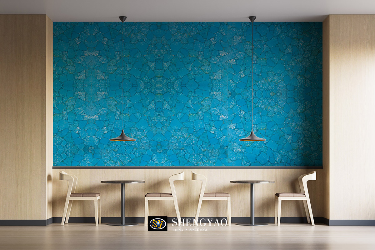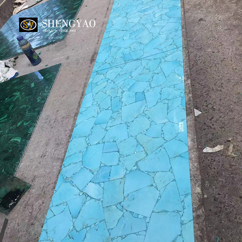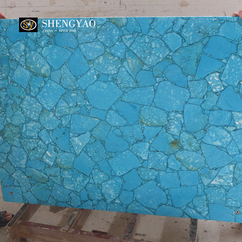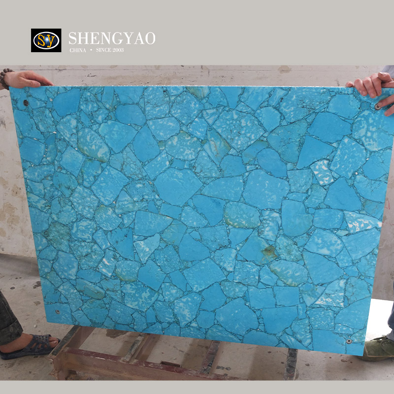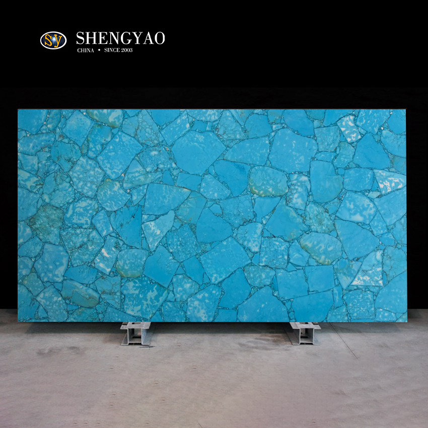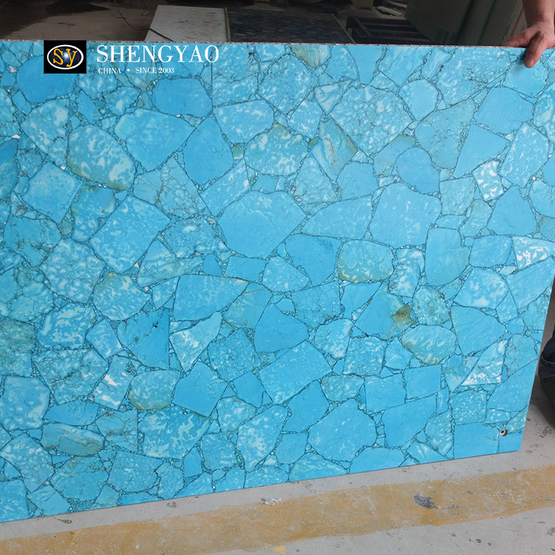 Turquoise Slab is a relatively rare gemstone decorative slab, turquoise slab has a special color, so that it is different.Turquoise slabs can be applied to background walls, floors, furniture, countertops.