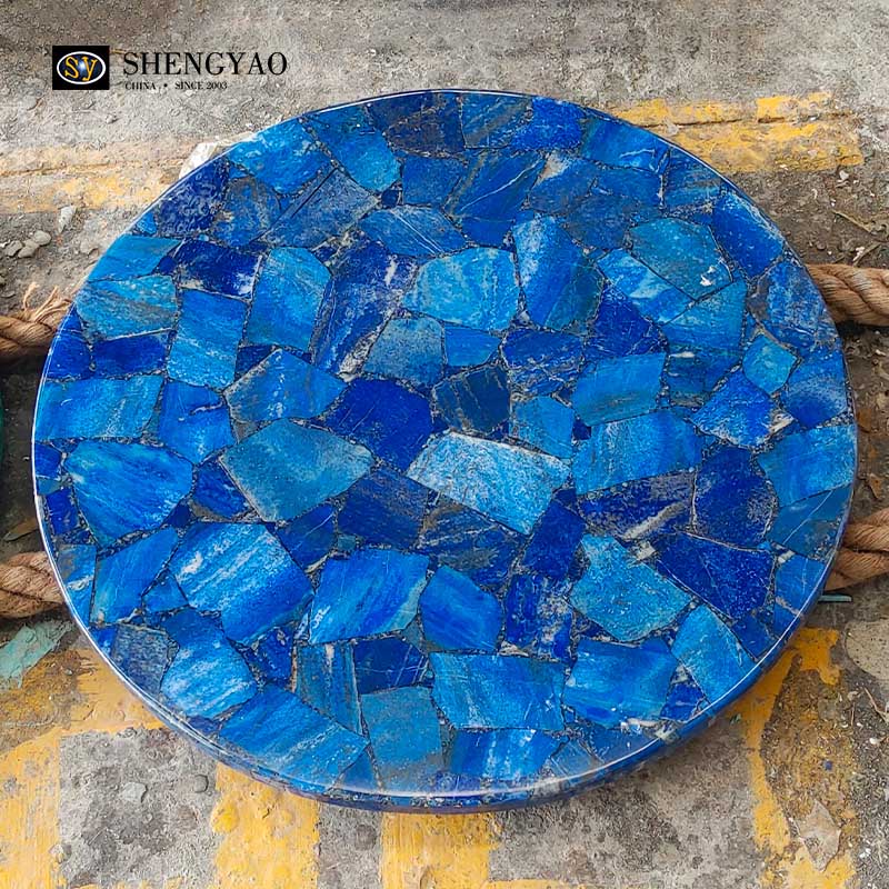 Round Lapis Lazuli Table Top,Natural Gemstone Countertop,Blue Semiprecious Stone Slab Manufacturer China